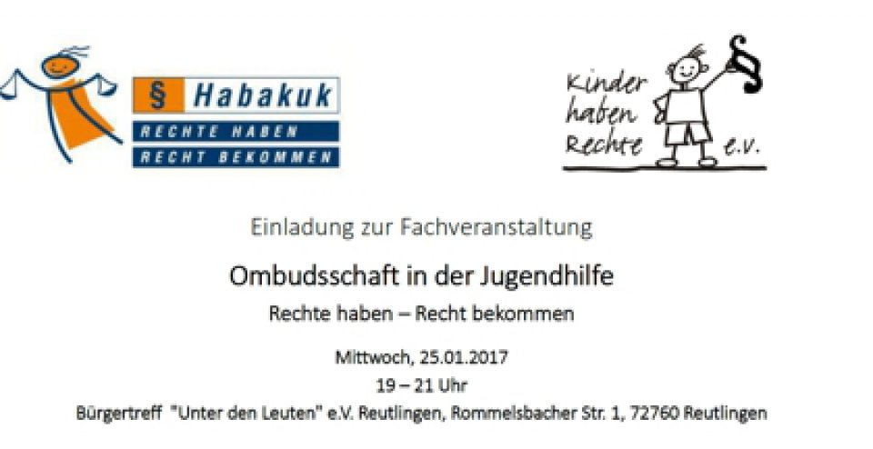 Der Verein „Kinder haben Rechte e. V.“ und die „Initiative Habakuk“ laden Sie herzlich ein zu einer Informationsveranstaltung zum Thema Ombudschaft in der Jugendhilfe.
