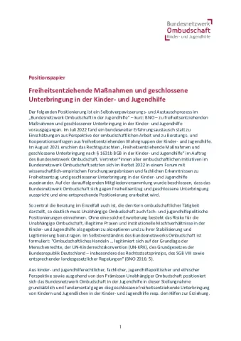 Aus kinder- und jugendhilferechtlicher, fachlicher, jugendhilfepolitischer und ethischer Perspektive sowie ausgehend von den Prämissen Unabhängiger Ombudschaft positioniert sich das Bundesnetzwerk Ombudschaft in der Jugendhilfe in dieser Stellungnahme gegen die geschlossene freiheitsentziehende Unterbringung von Kindern und Jugendlichen in der Jugendhilfe resp. den Hilfen zur Erziehung.